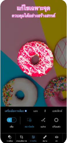 - รีทัชและปรับแต่งภาพถ่ายบุคคลหรือเซลฟี่ได้ในเวลาเพียงไม่กี่วินาที